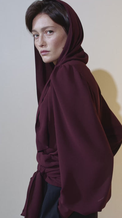 Burgundy blouse with a hood - the highlight of the collection