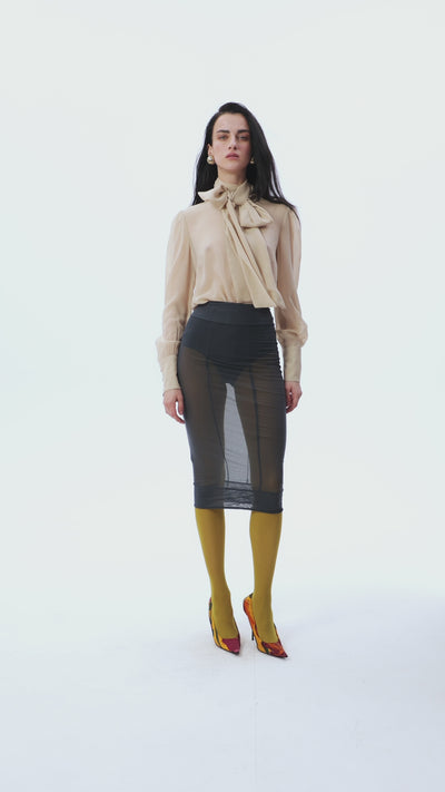 A translucent gray skirt is for those who are not afraid to make a statement. It plays with shape and texture, opening up space for stylistic experiments. Wear it with a basic bodysuit, blouse or jacket - every time you will have a different mood. Freedom to look the way you want.
