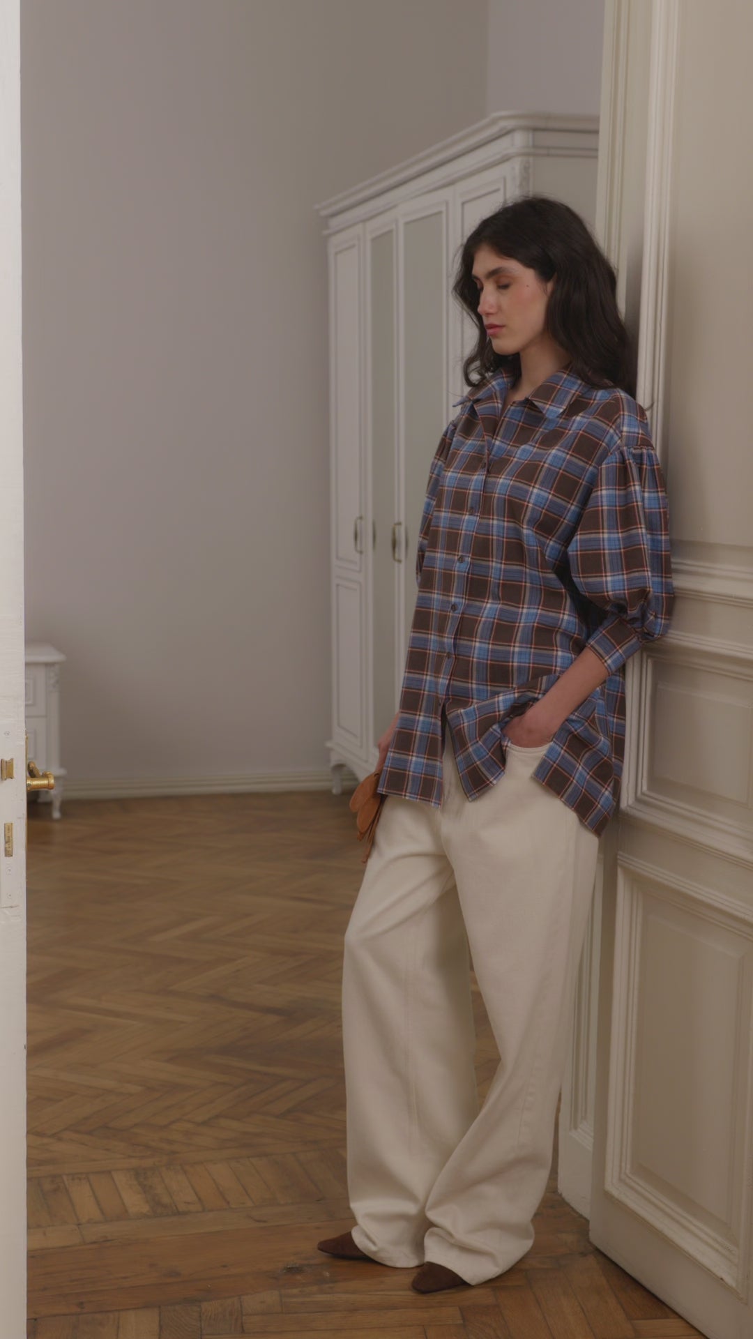 Мʼяка фланель створює комфорт, а акцентні рукави додають образу архітектурності.